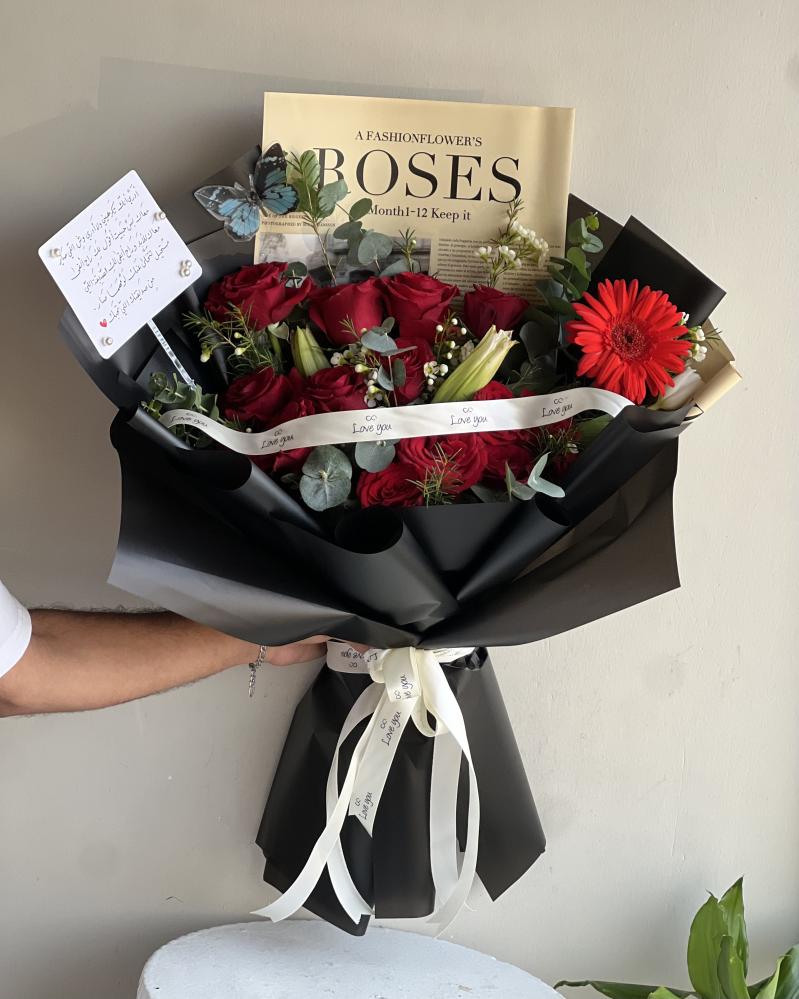 تظهر علامات الجودة العالية في اختيار المواد والعناية بالتفاصيل، مما يضمن أن تظل الباقة طازجة وجميلة لفترة طويلة. إن استخدام الورود الطازجة يضمن لك الحصول على منتج يدوم طويلاً ويعكس الاهتمام والرعاية.